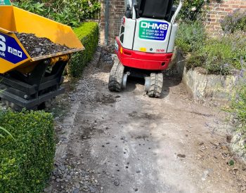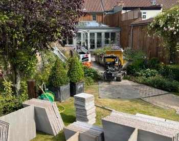 For this project, We were asked by the client to refresh the existing hard landscaping aspects of their existing established country garden. The existing garden incorporated raised shrub/plant beds that had been built using concrete block walls and then clad in Timber Decking/Cladding boards, that over time had gone rotten and began to look shabby, the garden also included a large timber decking area which was the main entertaining area within the garden, and again it has become rotten in places and was looking shabby. The paths around the garden were constructed using purple slate chipping’s.