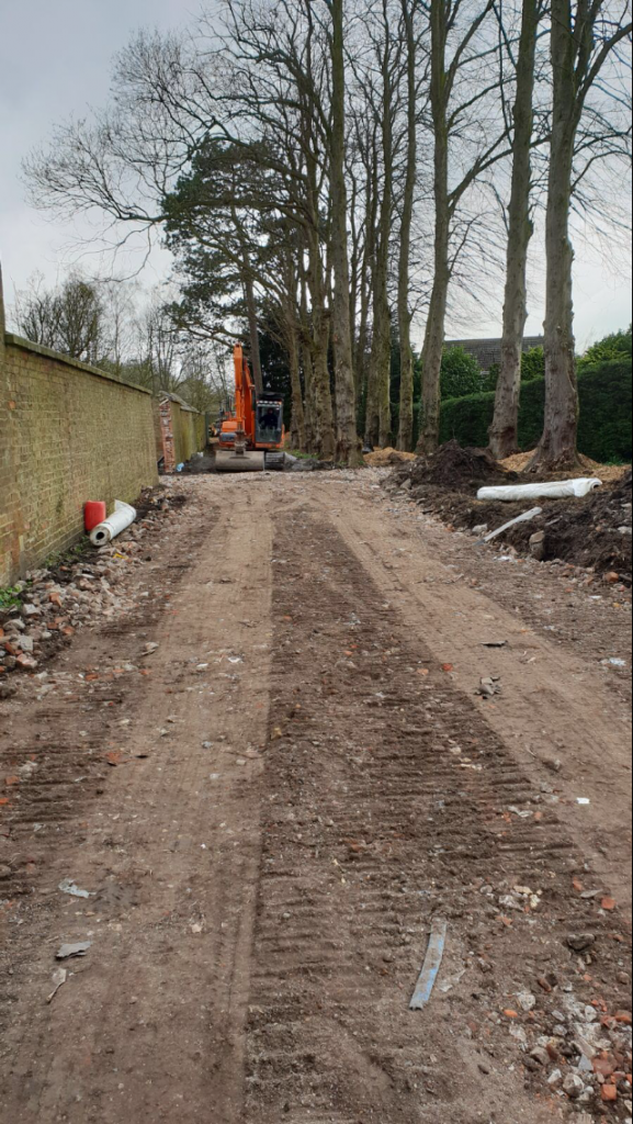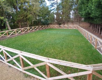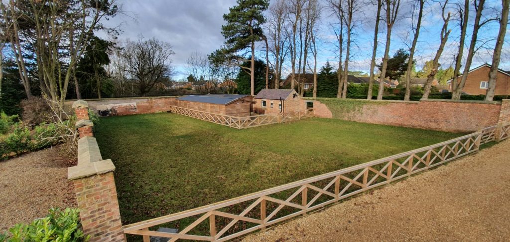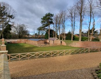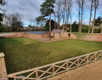 This was an exciting project, of which we have enjoyed watching the site transform.. Once an old nunnery, this site was very basic, just grass lawns and over grown shrub beds etc. Out client bought the site and has developed the site into a fantastic residential dwelling complete with equestrian arena, multi – use sports pitch/court etc. The rest of the site is being transformed into high end properties in a gated community. We have carried out various groundworks, (drains, services, concreting etc) landscaping, fencing, equestrian arena construction, paddock seeding, equestrian turn out area, paving, gravelling, planting, tree works, general site tidy, tarmacing, root garden installation etc.